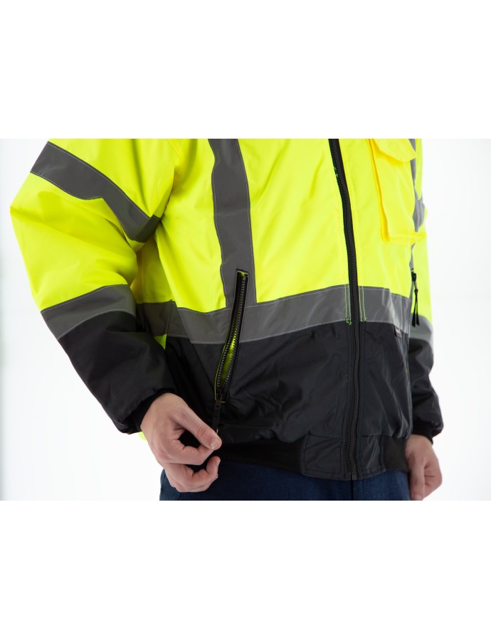 • Economical high visibility bomber jacket with black in all the areas that get the most soiled