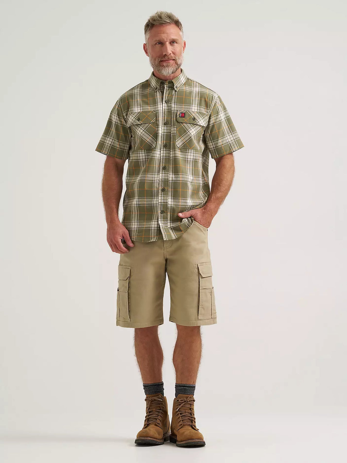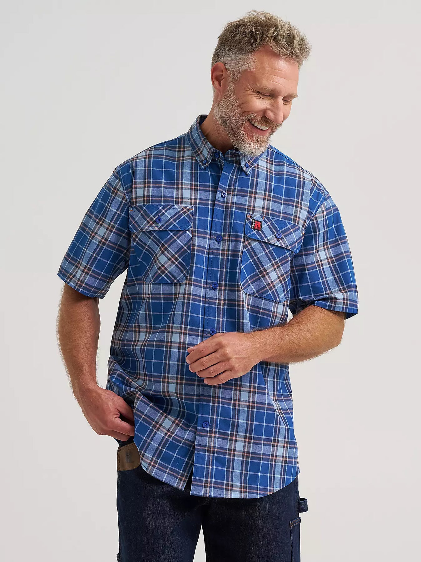 Professional yet ready to work, the Wrangler® RIGGS Workwear® Foreman Plaid Work Shirt will make a comfortable addition to the daily grind. This short-sleeve shirt features a relaxed fit giving you plenty of room to move, with underarm gussets with added ventilation to keep you cool when the day starts heating up, and a mesh lining at the back yoke. It’s crafted from a comfortable cotton blend with just the right amount of stretch and a classic plaid pattern for versatility whether you’re on or off the clock. Plus, it comes with button flap pockets at the chest and a pencil slot to store all the essentials you need.