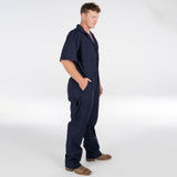 Stay cool, comfortable, and protected while working in the Poplin Unlined Short Sleeve Coveralls from KEY Apparel. Designed for hardworking professionals, these coveralls combine lightweight breathability with dependable durability. The 5.25 oz poplin fabric, made from a 60% cotton / 40% polyester blend, offers a soft yet sturdy feel that stands up to daily wear. A water and stain-resistant finish helps keep the fabric clean and dry, while the relaxed fit and pleated back provide unrestricted movement for all-day comfort. Featuring oversized reinforced rear pockets, two chest pockets (including one with a flap and snap closure), and utility pockets on each leg for convenient storage of tools and essentials. Triple-needle stitching reinforces high-stress areas for long-lasting strength, and a locker loop makes hanging easy after a long day’s work. Lightweight, breathable, and built to last, the KEY Poplin Unlined Short Sleeve Coveralls are the perfect choice for warm-weather workwear.