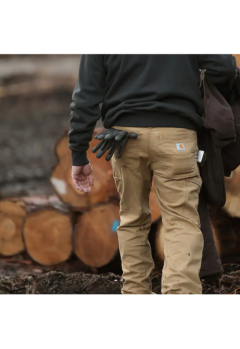 When there's work to be done, these Carhartt double-knee pants are up to the challenge. A midweight canvas blend with built-in Rugged Flex® technology offers the perfect amount of stretch for easy movement. They've got all the traditional jean pockets plus a dedicated phone pocket and a utility pocket for your knife or box cutter. Plus, they're compatible with knee pads for additional comfort and durability. Previously known as the Rugged Flex® Rigby Double Front.