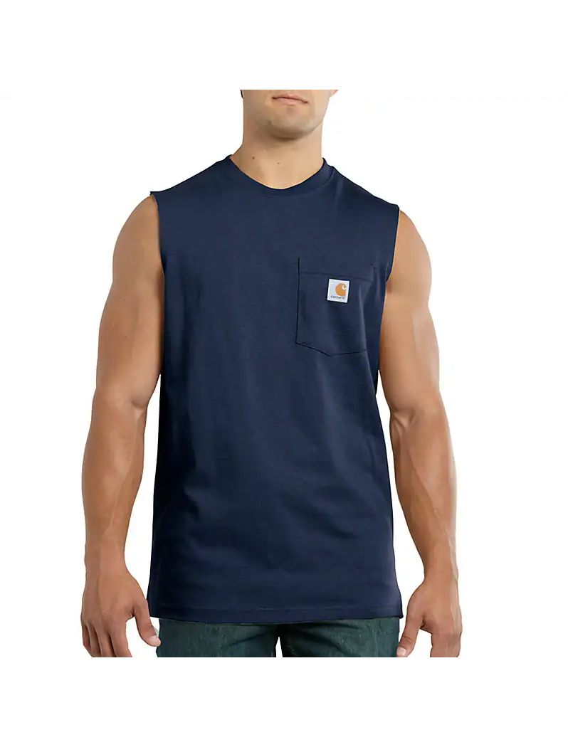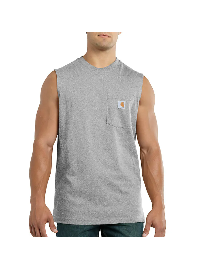 Since 1889, Carhartt has made durable workwear you can count on as you tackle the toughest jobs. This men's sleeveless t-shirt bears our logo proudly on the chest pocket. It's made of heavyweight cotton jersey to wear by itself or as a base layer.